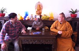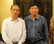 中國抗癌協(xié)會常務(wù)理事、河南省抗癌協(xié)會會長楊文獻教授和《百花散》傳人梅先生合影