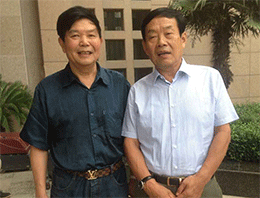 中國抗癌協(xié)會常務(wù)理事、河南省抗癌協(xié)會會長楊文獻教授和《百花散》傳人梅先生合影